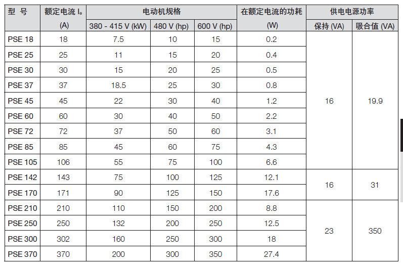 PSE18...PSE370軟起動(dòng)器工作電壓范圍寬廣。